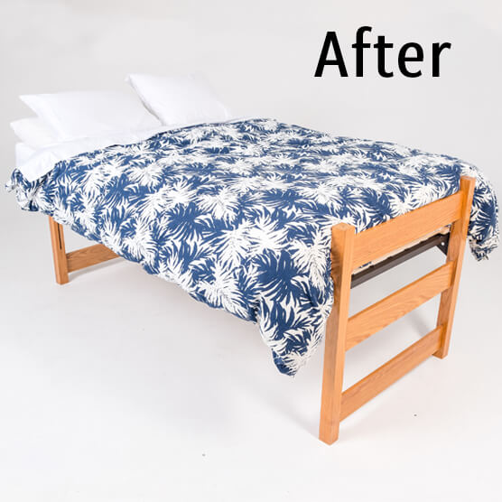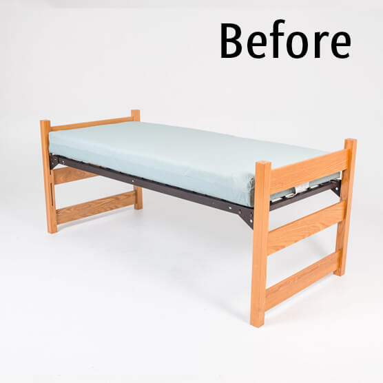 Worried about losing underbed storage? We built a proprietary bed frame that attaches to the college frame to convert a twin XL into a full XL. This means an even bigger bed and even more underbed storage.