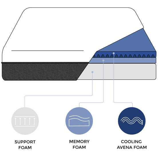 Our premium memory foam mattress is designed with all types of sleepers in mind. Whether you're a side sleeping pillow hugger, face down starfish, or on your back mummy, this mattress is built for you. The combination of 3 high-performance foam layers deliver cooling bounce, contouring pressure relief, and core support for a great night's sleep.